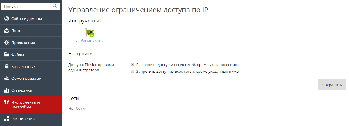 Чтобы разрешить доступ к администрированию Plesk только с определенных IP-адресов или сетей: